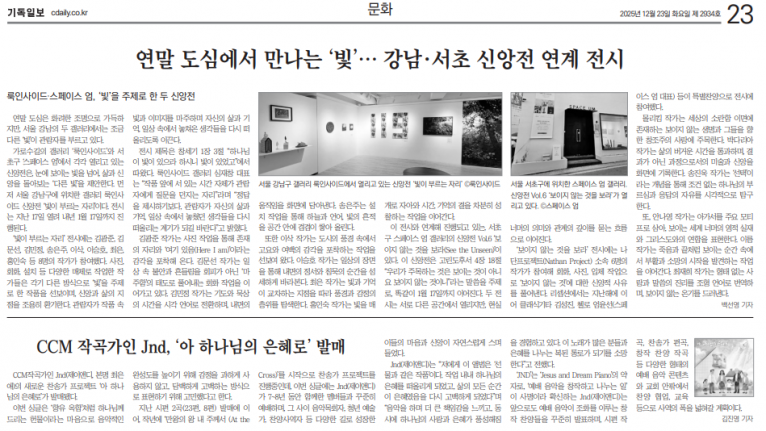 뮤직타임 [기사] CCM 작곡가인 Jnd, ‘아 하나님의 은혜로’ 발매(기독일보)
