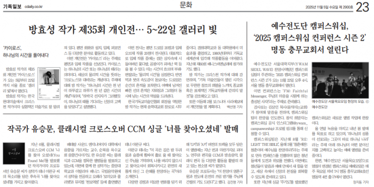 [기사] 작곡가 유승문, 클래시컬 크로스오버 CCM 싱글 ‘너를 찾아오셨네’ 발매(기독일보)
